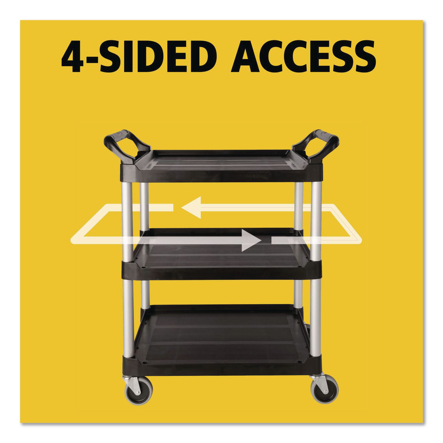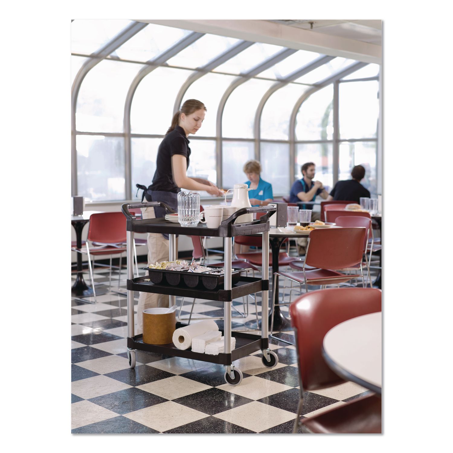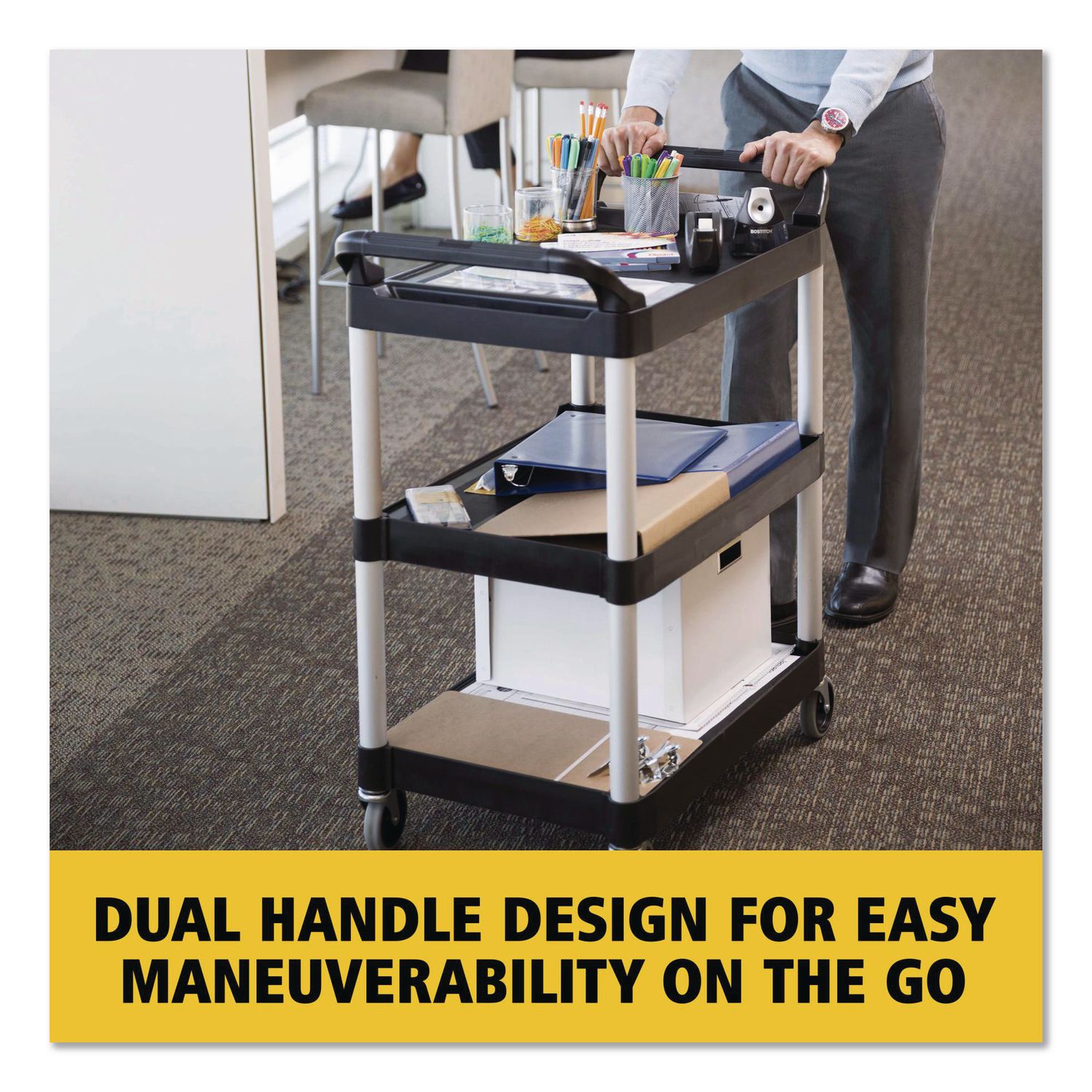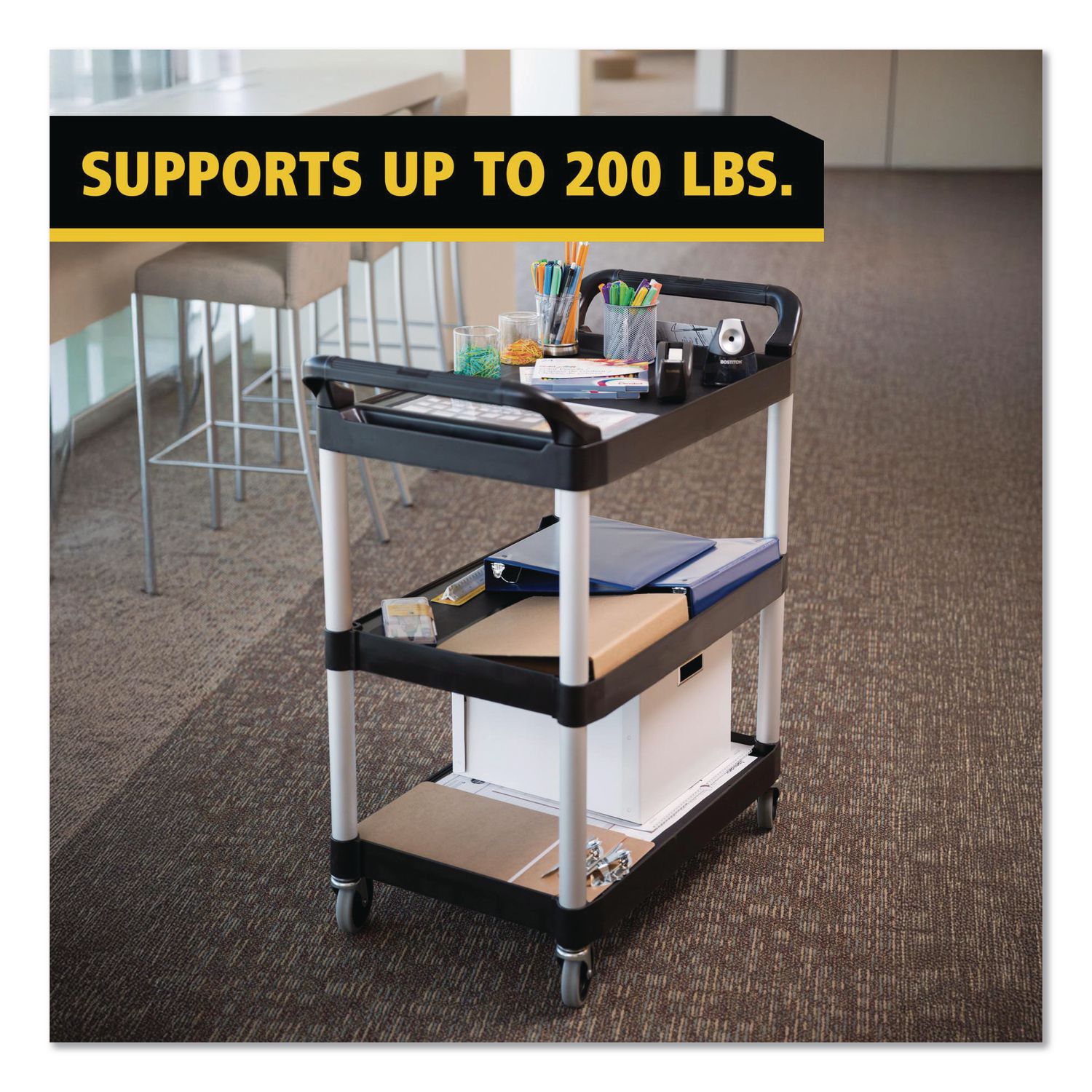 Three- Shelf Service Cart, Plastic, 3 Shelves, 200 lb Capacity, 18.63" x 33.63" x 37.75", Black